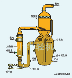 2.育晶器上部擴大的斷面可以使鹽晶沉降下來,不參與循環(huán),減少了二次成核的機會;